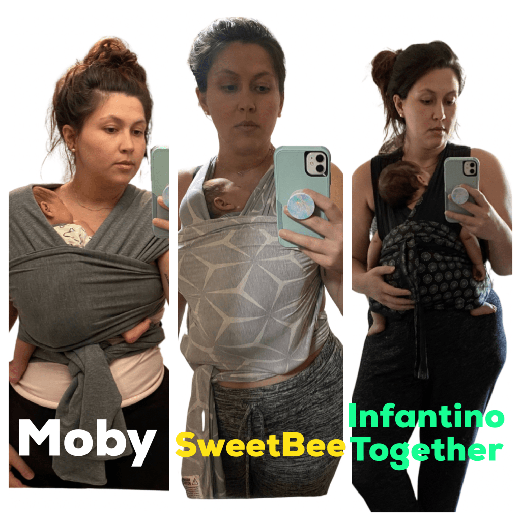 | Moby Wrap | SweetBee Wrap | Infantino Mei Tai | Infantino Together Pull-on Knit Carrier | |